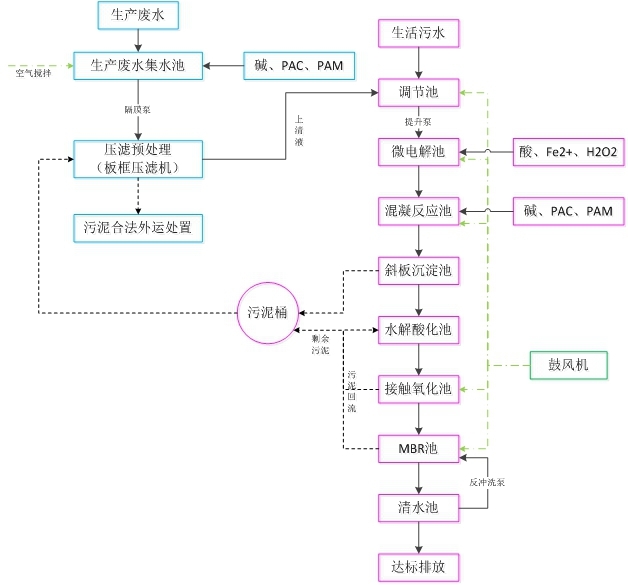 其水量約為生產(chǎn)廢水4m3/d,生活污水26m3/d,運(yùn)行時(shí)間20小時(shí)每天。